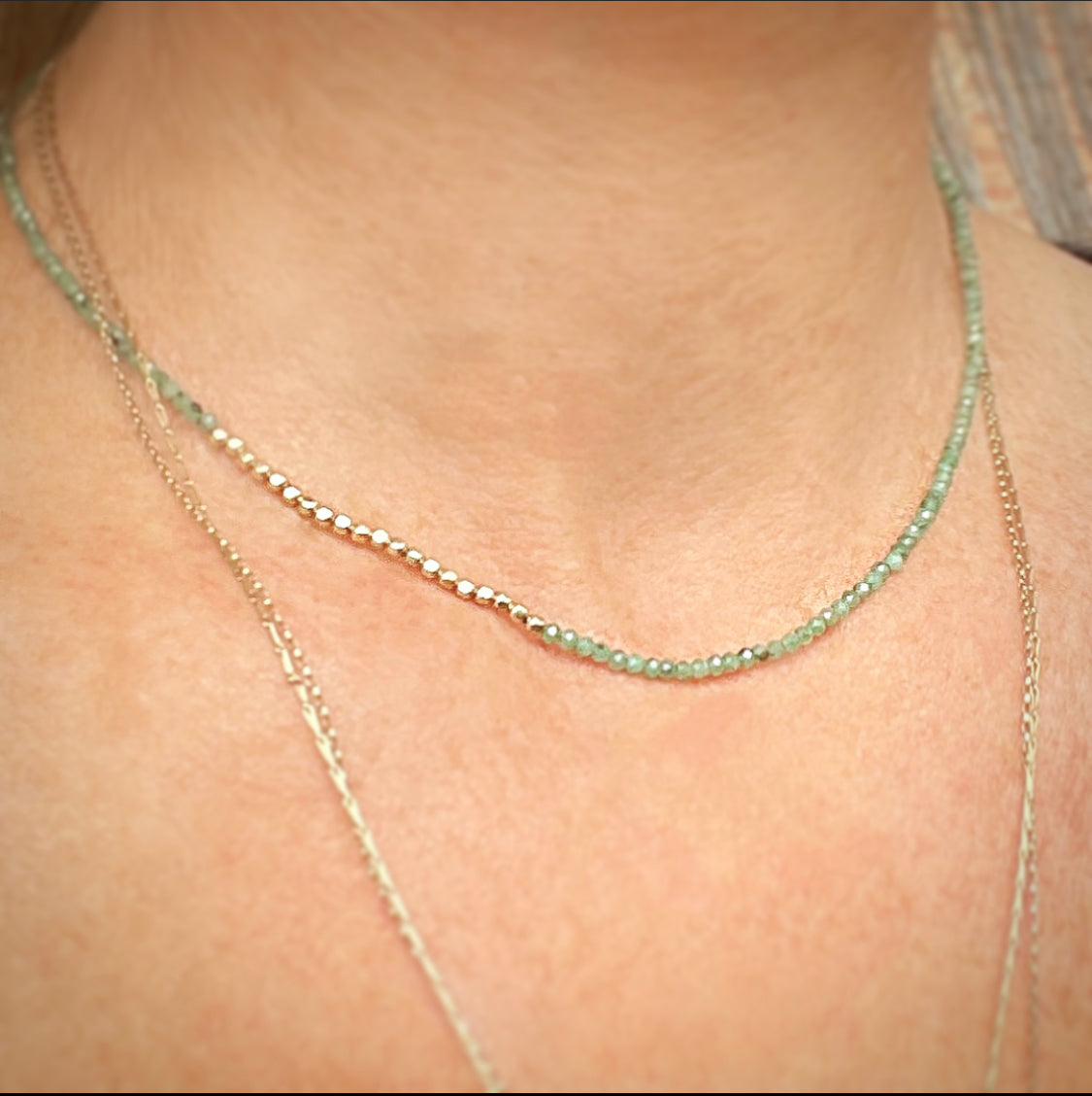 Handcrafted with 2mm Natural Emerald beads
