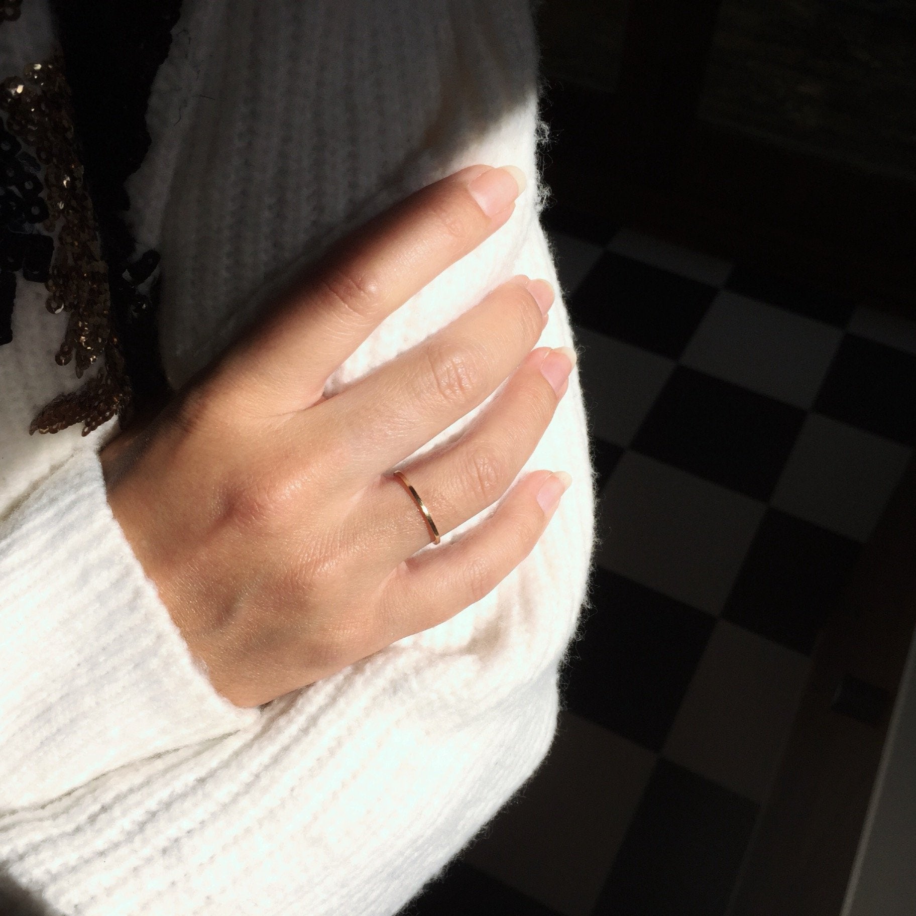 Sleek & minimal, this petite 1mm thick square band in 9ct recycled gold would make a smart addition to your ring stack or wear it alone for understated elegance. A beautiful, minimal piece that is becoming ever popular as a wedding band.